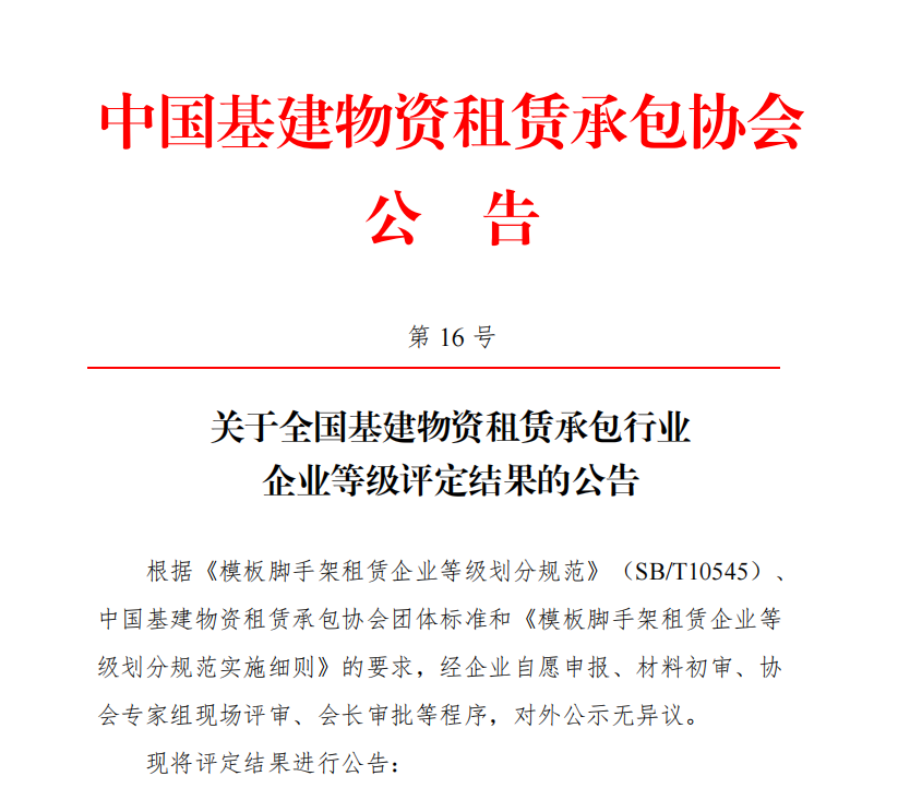 中国基建物资租赁承包协会