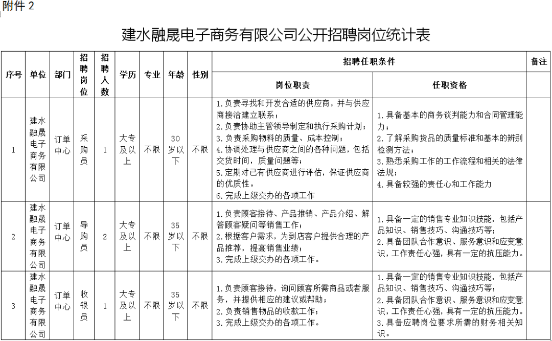 2.《建水融晟电子商务有限公司公开招聘岗位统计表》