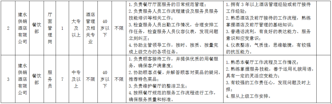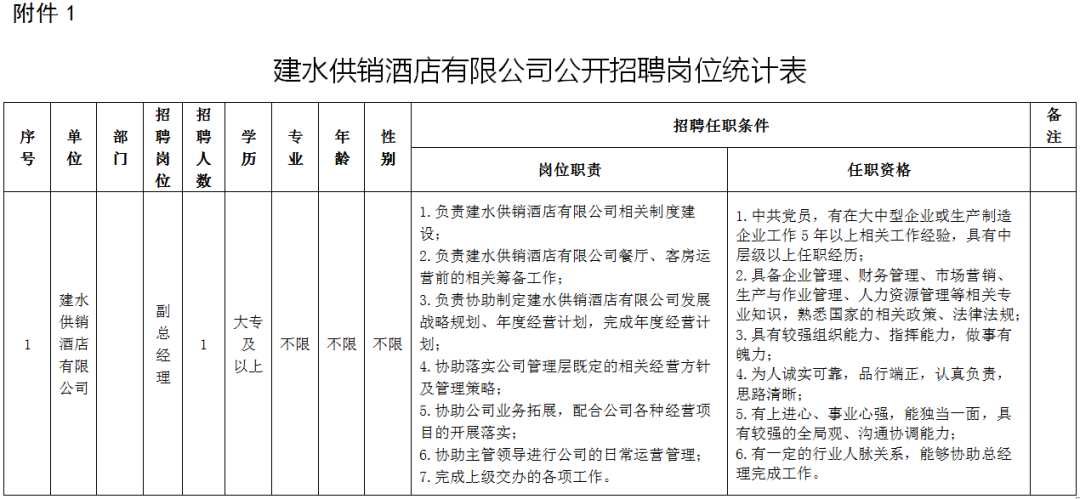 1.《建水供销酒店有限公司公开招聘岗位统计表》