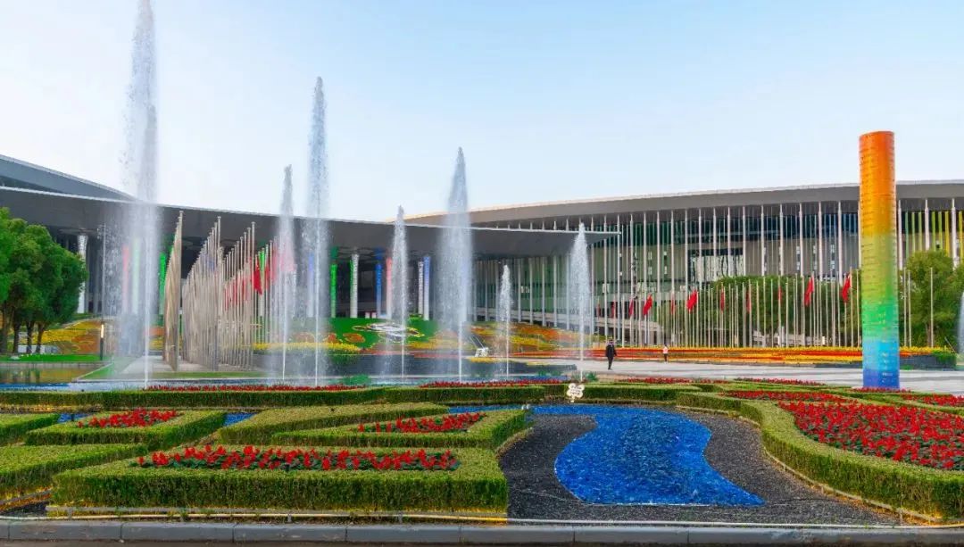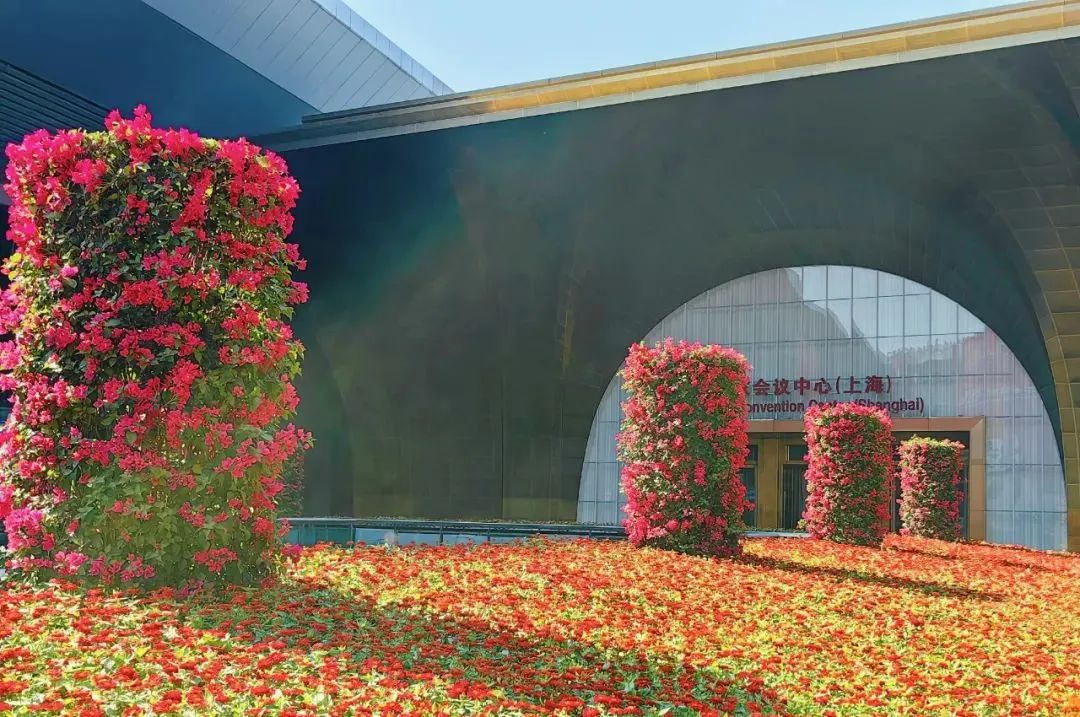 目前,由上海建工园林集团承建的第六届进博会场馆景观装饰工作全面定妆,南广场、会议中心(西厅)已是一派喜庆热烈的迎宾氛围。2018年至今,园林集团已先后高质量完成了五届进博会南广场景观绿化提升工程,打造出富有时代特色与文化内涵的优质景观。