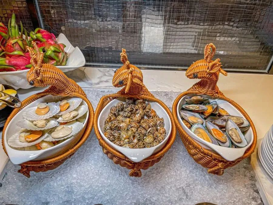餐厅设计感十足,流动的光影,宽敞的桌面,奢华的用餐环境,在优雅环境里惬意地享用浪漫自助餐。于此用餐,被劳累了一天的味蕾被充分激发,只想大快朵颐,满足味蕾。