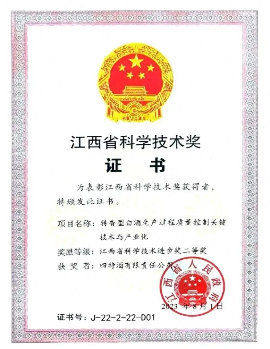 10月23日,全省科学技术奖励大会在南昌召开,对2022年度为江西省科学技术进步、经济社会发展作出突出贡献的科技工作者和组织给予表彰和奖励。会上,四特酒申报项目——《特香型白酒生产过程质量控制关键技术与产业化》荣获江西省科学技术进步奖二等奖。四特酒公司技术部经理林培作为获奖代表出席此次会议。