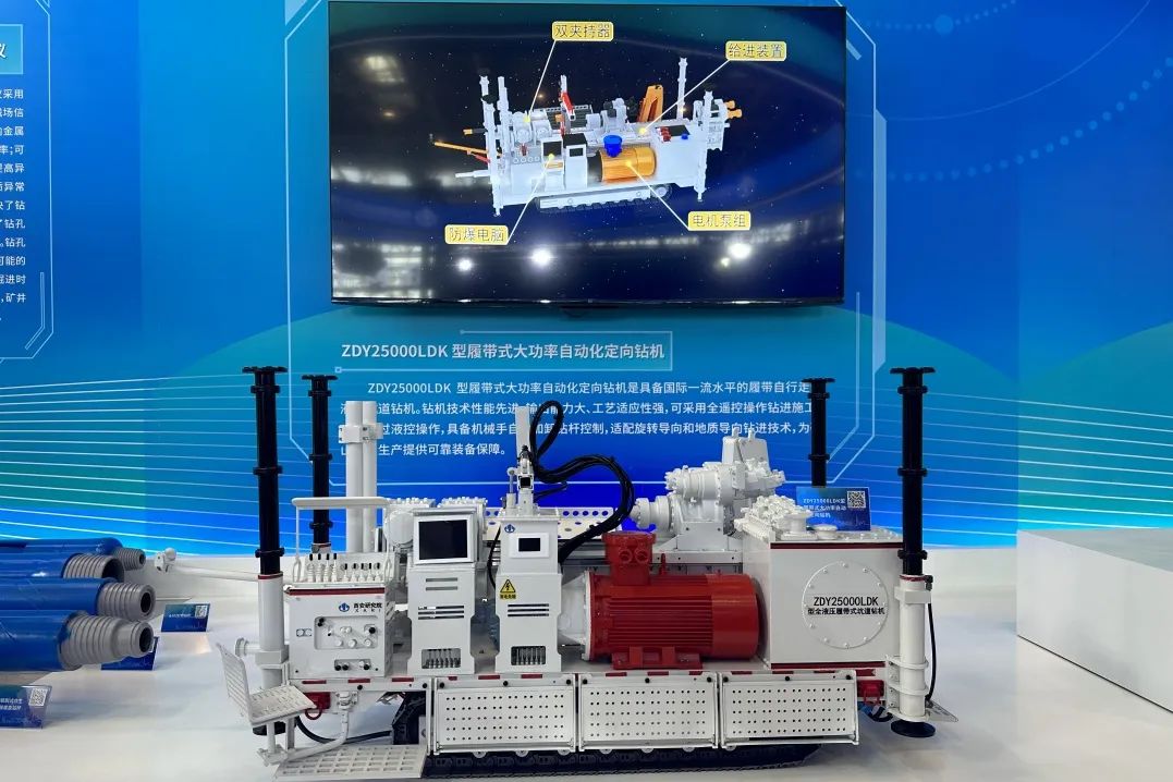 中国煤科西安研究院ZDY25000LDK钻机重点针对煤矿井下大直径超长定向钻孔施工设计,能够运用于井下超前探测、精准地质探查和灾害防治,为“以孔代巷”采动卸压瓦斯抽采和盘区瓦斯区域预抽提供了装备保障。ZDY25000LDK钻机额定扭矩25000Nm,给进/起拔力达350kN,使煤层钻进效率提高25%,岩层钻进效率提高32%,能够配套随钻多参数测量仪器,在钻进过程中实时动态监测,随钻识别地层变化并精确调控钻孔轨迹,减少分支孔数量,实现沿目标地层长距离延伸及精确中靶,并集成换杆机械手、防爆控制柜、无线遥控器等新机构,配套实时监测系统与地面搭建的远程信息交互平台实现多维度多场景同频互动,使钻探全过程实现信息化,并为透明工作面构建提供了基础数据,具有自动化、信息化、打得准、能力大等显著优点。去年,该技术装备入选了《科创中国先导技术榜单》和《矿产资源节约和综合利用先进适用技术目录》。