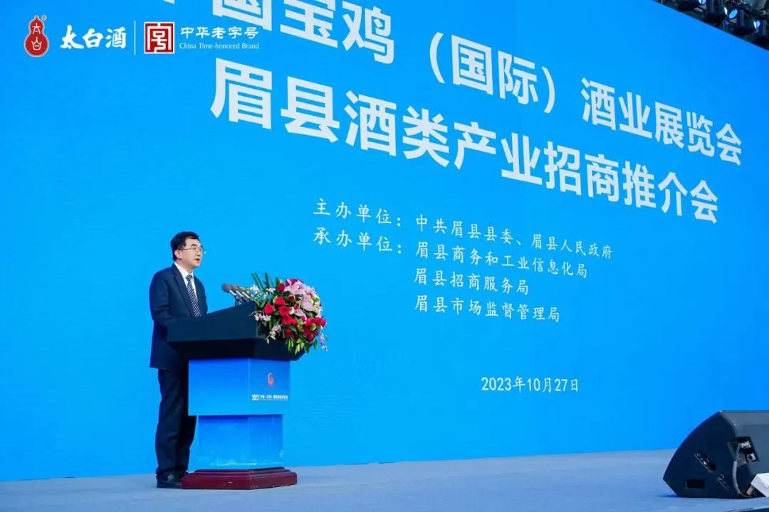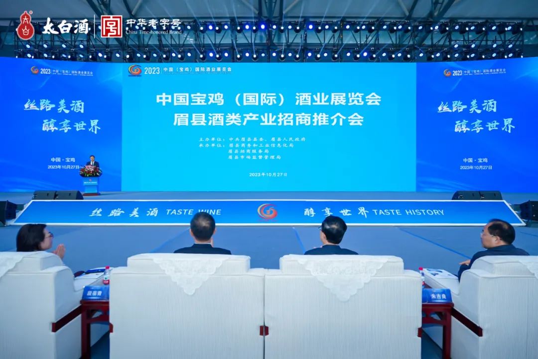 为落实陕西省委、省政府关于打造千亿白酒产业集群的决策,加快宝鸡市“打造全国知名凤香型白酒生产基地”建设,推动眉县“一山一水一文一武一产业一园区一酒业”发展战略实施,10月27日,2023中国(宝鸡)国际酒业展览会眉县酒类产业招商推介会在宝鸡国际会展中心1号馆隆重召开。