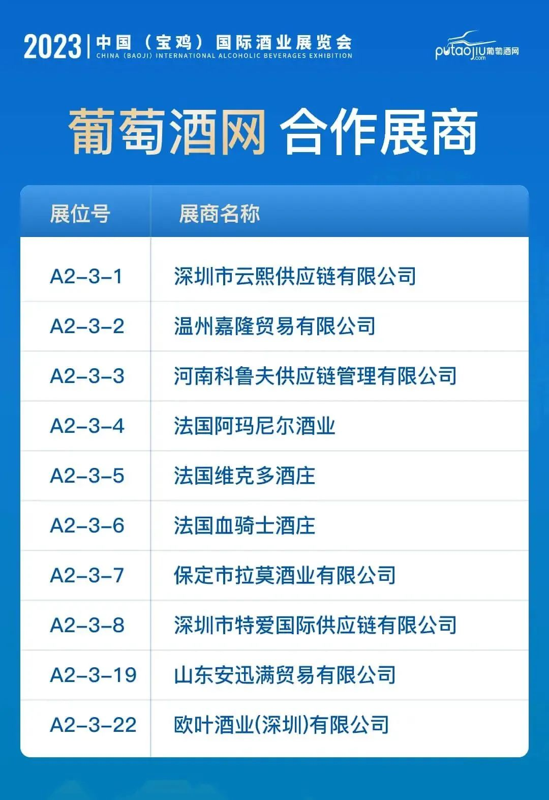 明天是展会的最后一天,也是来到星期六的周末休息时间,也将会是展会最火热的一天,境外美酒展区,A2-3葡萄酒网合作展区,欢迎陕西省宝鸡市的爱酒人士前来品鉴。