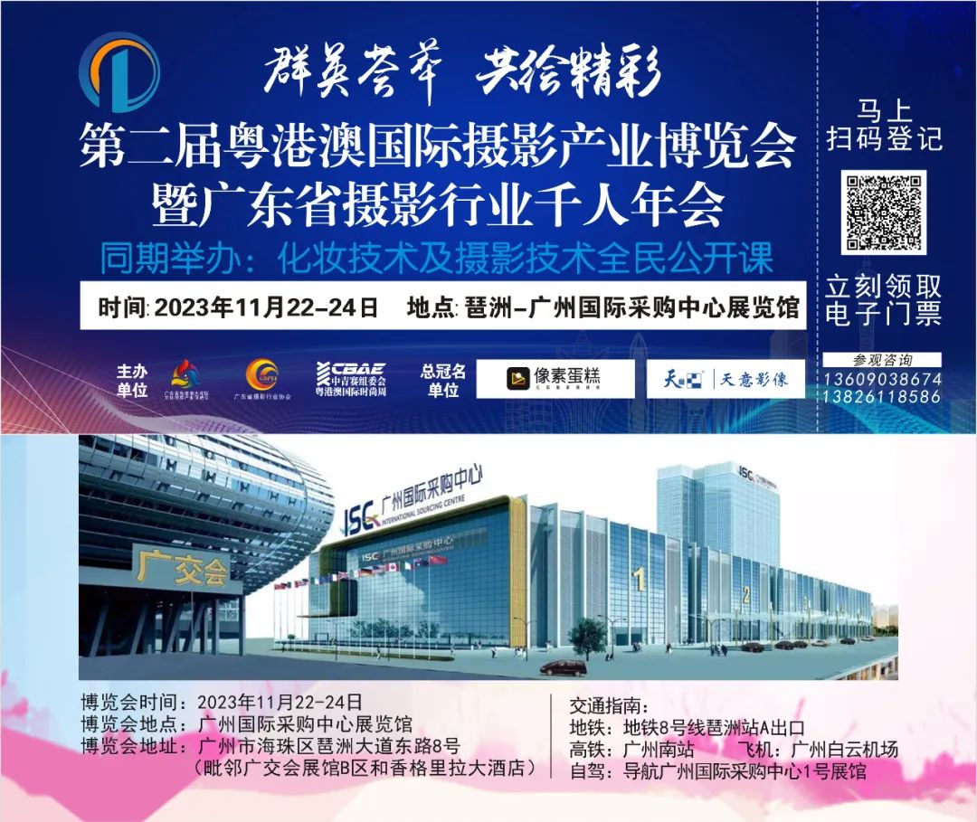 第二届粤港澳国际摄影产业博览会暨首届全国人像摄影名师作品大展!11月22-24日广州国际采购中心展览馆,欢迎莅临参观品鉴!