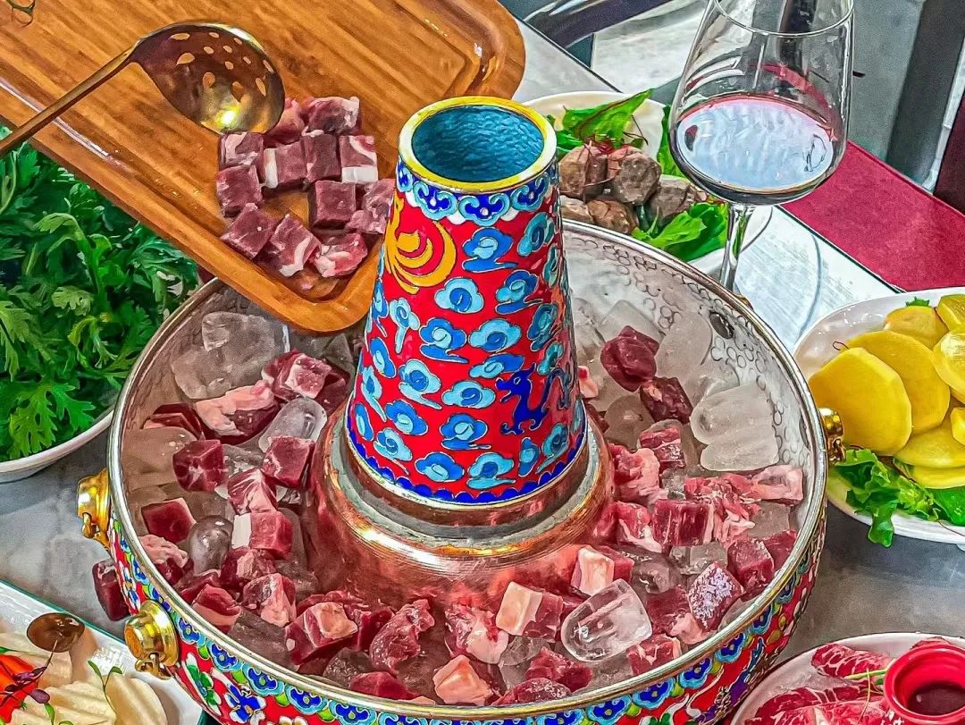 冰煮羊的独特吃法,在煮化冰的同时煮熟羊肉,更会加入宁夏本地的红酒,极大的保留了宁夏羊肉的鲜味,再有羊汤煮菜,实在一绝!