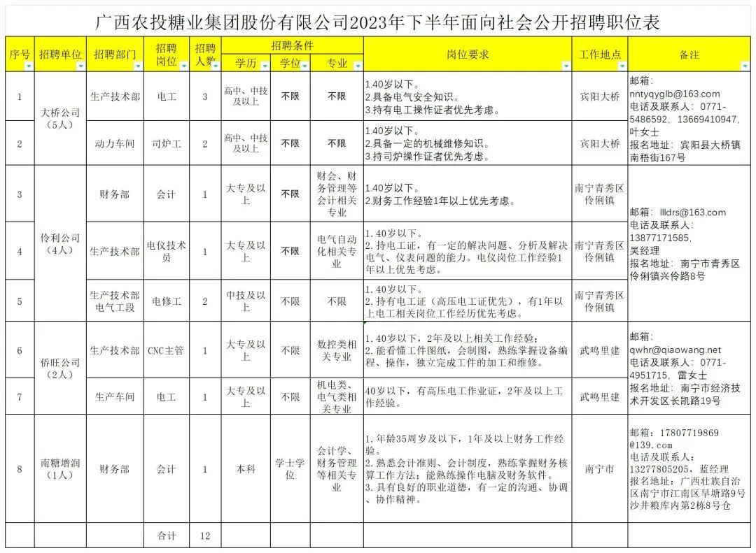 五、本次招聘相关工作,广西农投糖业集团股份有限公司人力资源部具有最终解释权。