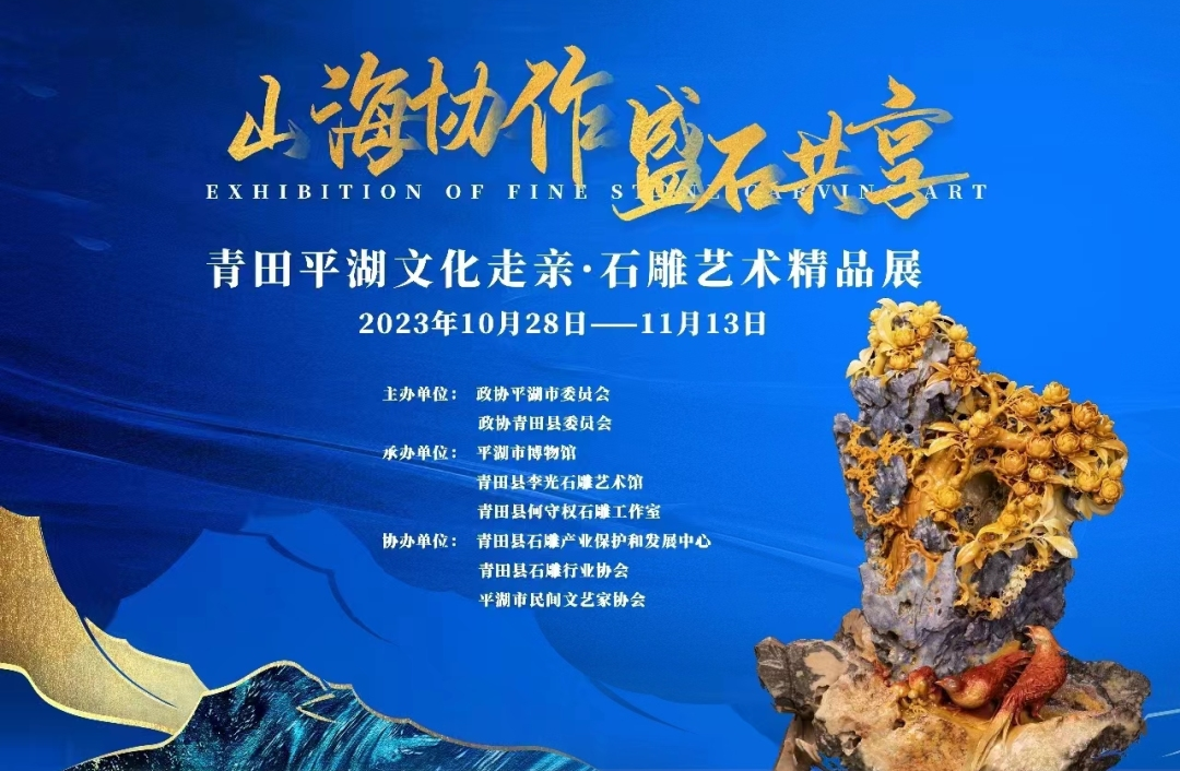 青田石雕是中国非物质文化遗产名录中的一枝奇葩。如今的青田,是名满天下的“中国石文化之都”,是造就大师和出产国宝的沃土。本期展览,萃选青田石雕大师主题创作佳品以及四大国石印章数百件,祈愿以此为窗口,使观者赏其华,品其味,尽享这场文化艺术的盛宴;也以此为纽带,不断进一步加强平湖与青田两地文化艺术的交流、合作。