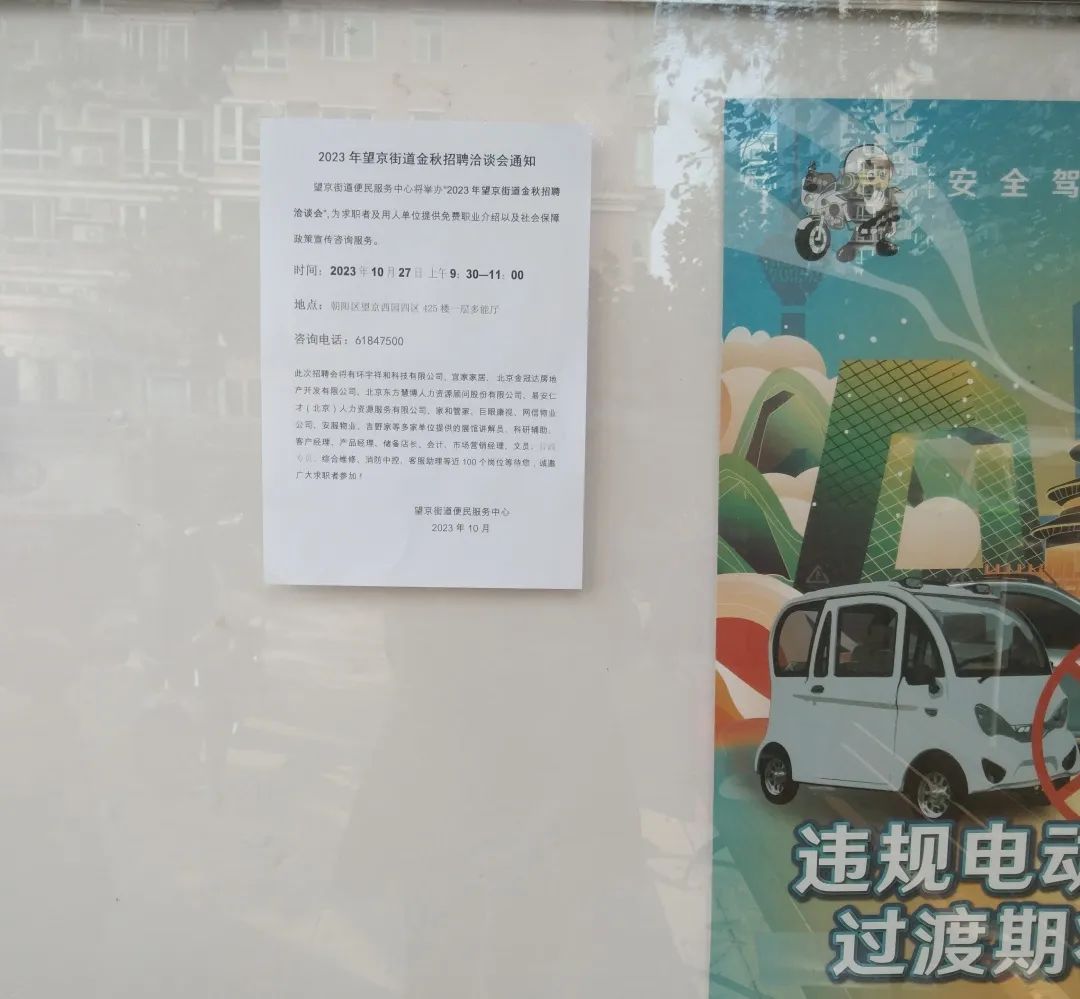 为更好地服务辖区有就业需求的居民,10月27日,望京街道便民服务中心举办了“2023年望京街道金秋招聘洽谈会”,为企业和求职者搭建起面对面沟通的桥梁。