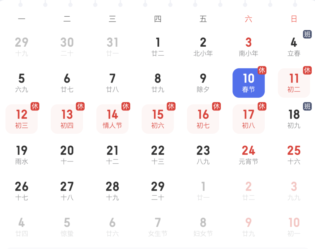 1、春节9天长假