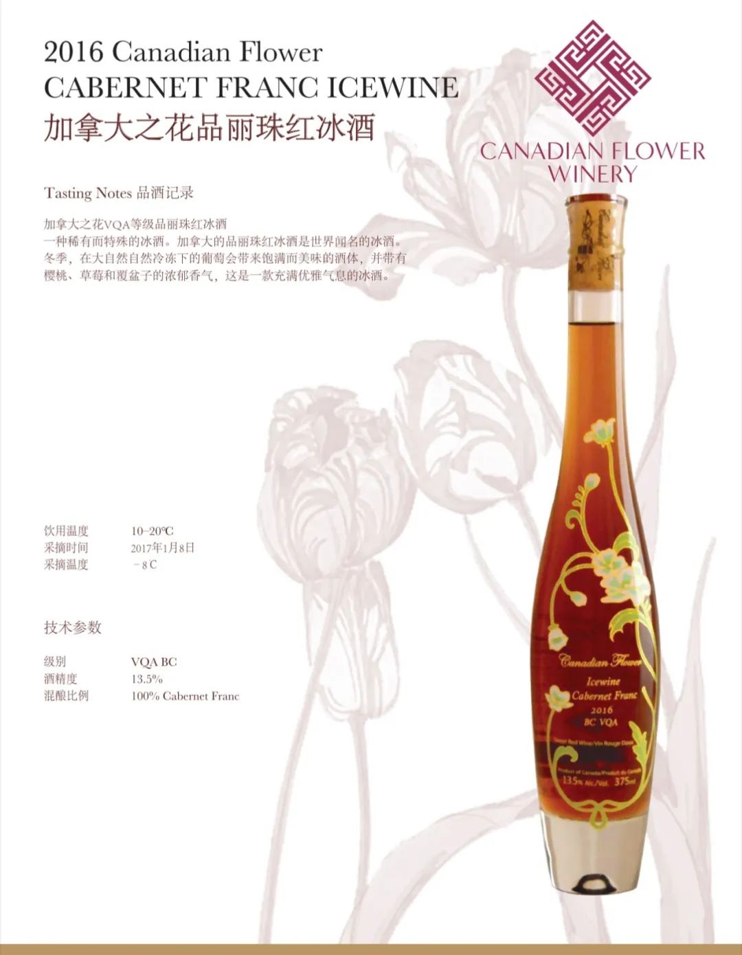 2016 Canadian Flower Cabernet Franc Icewine 375ml:
