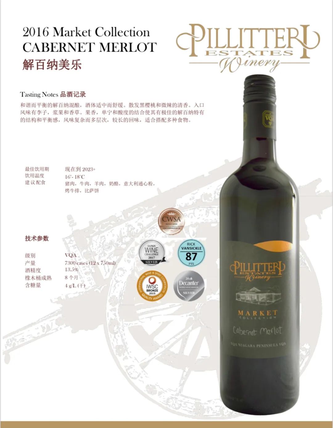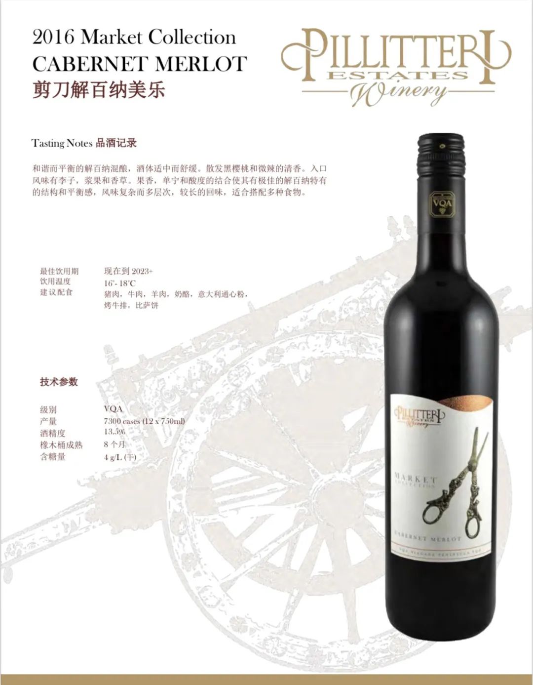 2016 Pillitteri Market Collection Cabernet Merlot 750ml(有2种包装,随机发货):