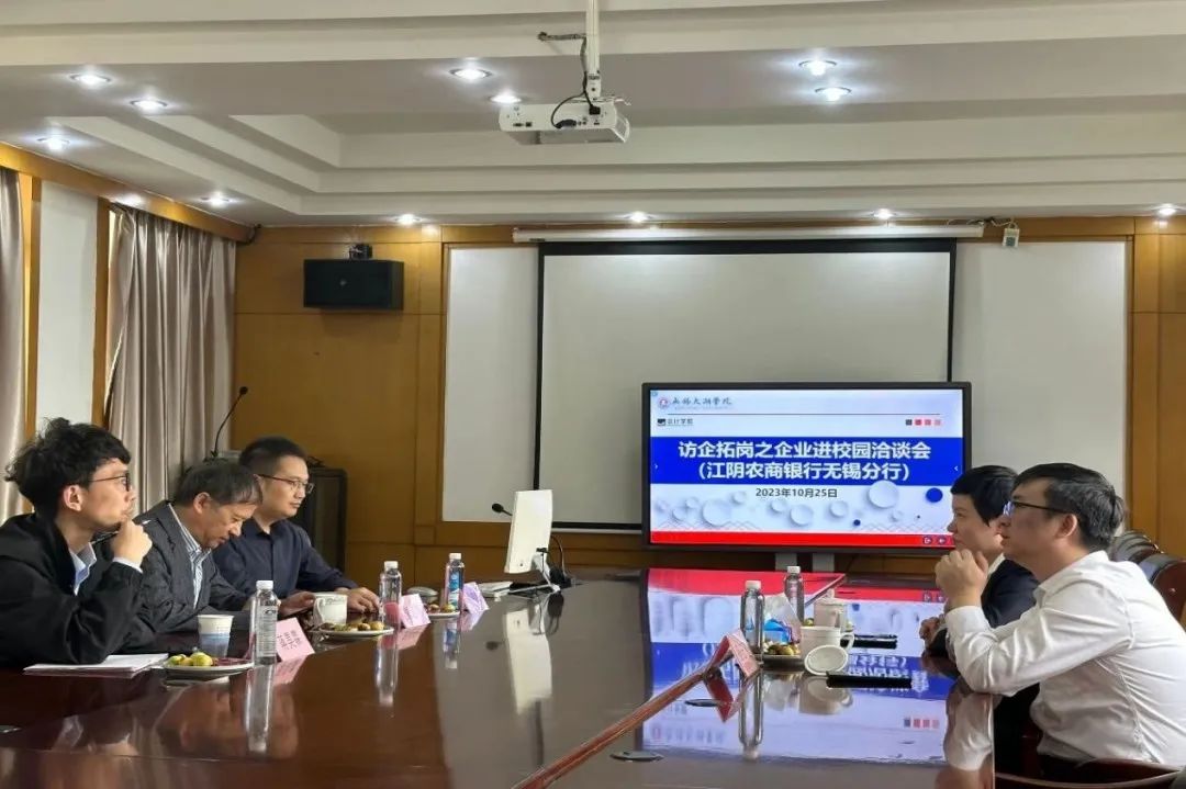 为深化校企间的合作交流,积极挖掘更多岗位资源,努力促进应届毕业生高质量就业,会计学院于10月25日下午2:00在会计学院207会议室召开了访企拓岗之企业进校园洽谈会。参与本次洽谈会的有江阴农商银行无锡分行行长王晓霞一行及会计学院院长唐建荣一行。