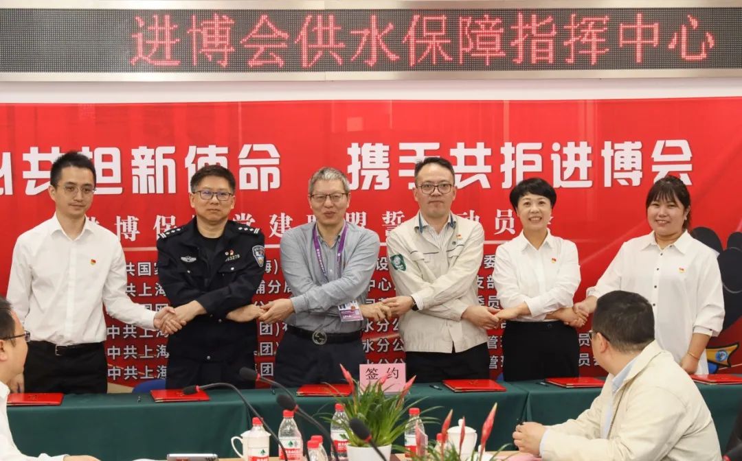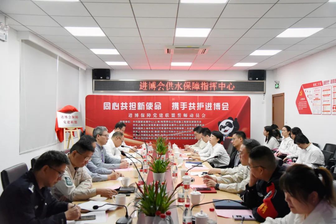 会上,各党建联盟单位分别介绍了进博会保障工作情况,并就开展进博会保障工作进行了探讨和交流。现场进行了进博会保障党建联盟揭牌仪式、进博会保障党建联盟签约仪式和进博会供水保障指挥中心入驻仪式。