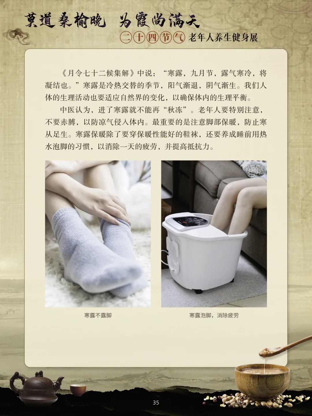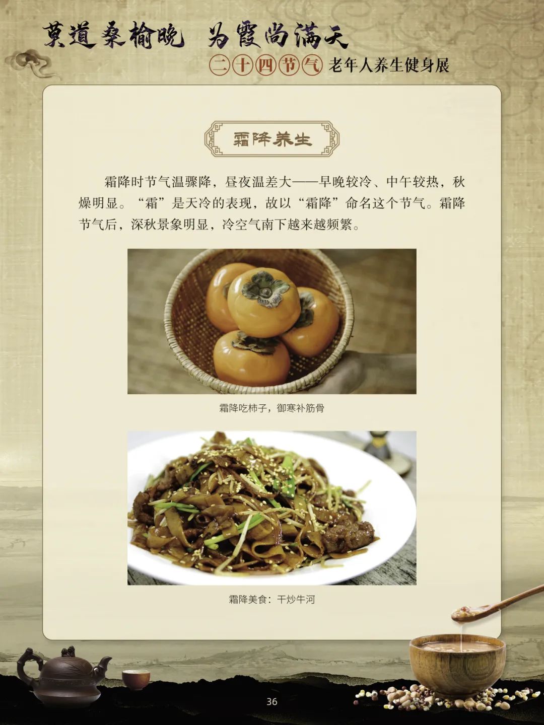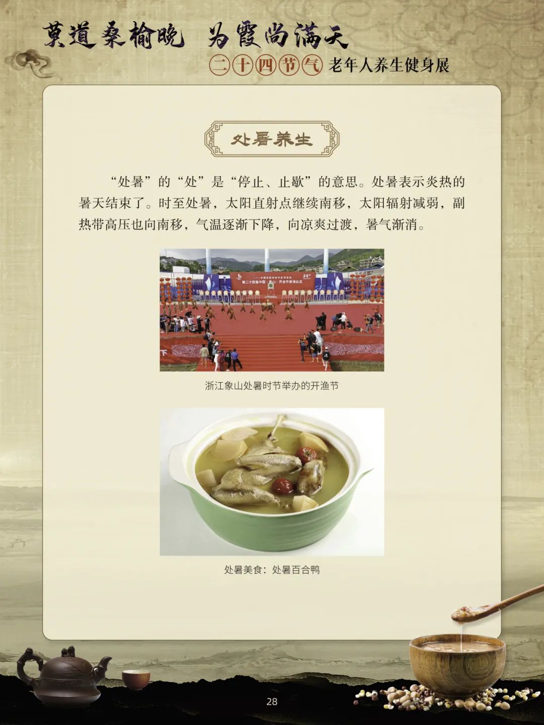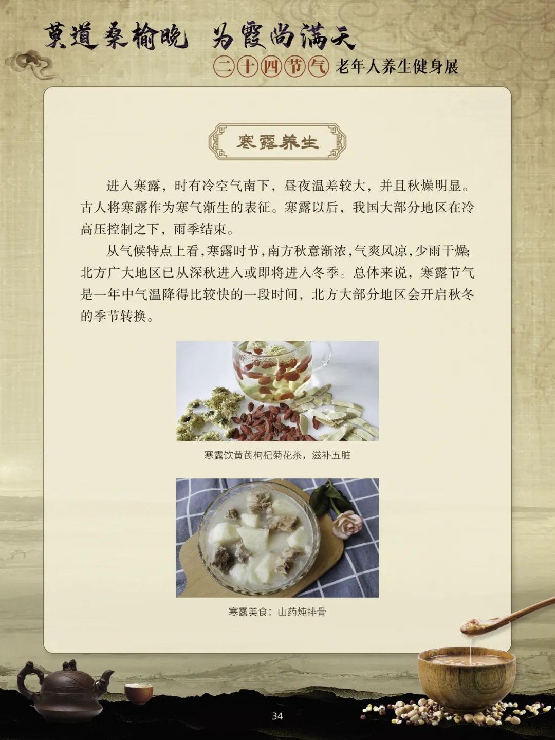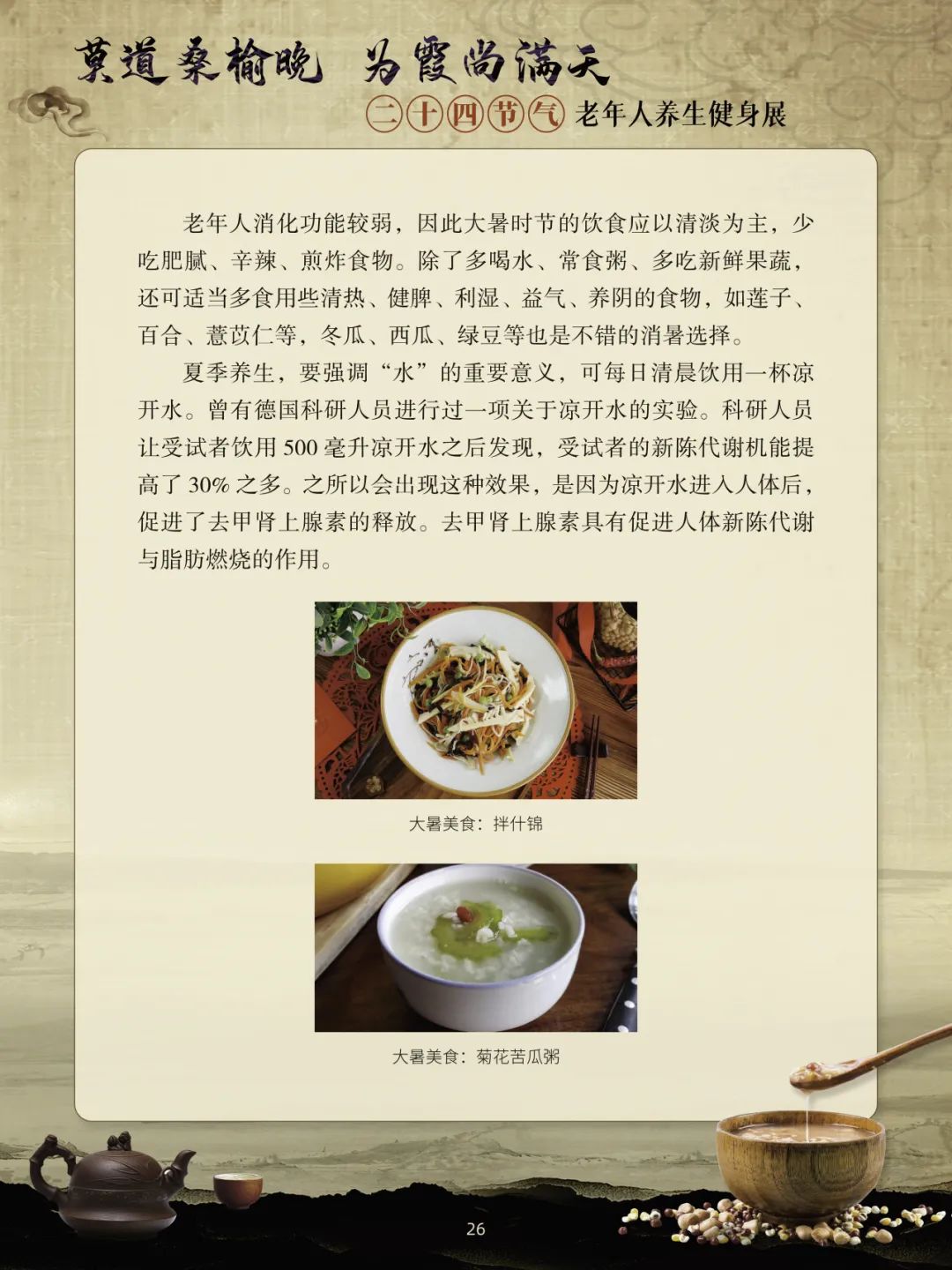 随着社会的发展和科技的进步,人们的生活方式发生了巨大变化,现代的人们似乎不再依自然变换行事,甚至逐渐忽视了节气变化对身体的影响。事实上,如果我们多关注一下节气的变化,跟随其变化调整我们的活动和饮食,很多疾病或身体的不舒服都是可以避免的,特别是老年人在日常保养上更需要对节气变化保持敏感。为此,我们特别策划了本展览。下面就请随着我们的展览,来了解一下老年人应该如何针对二十四节气进行养生与健身活动吧。