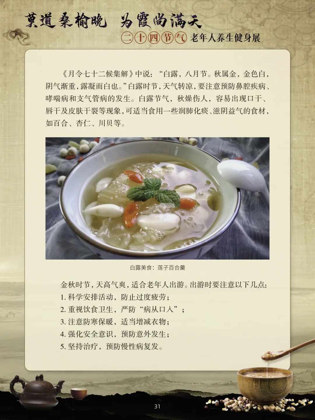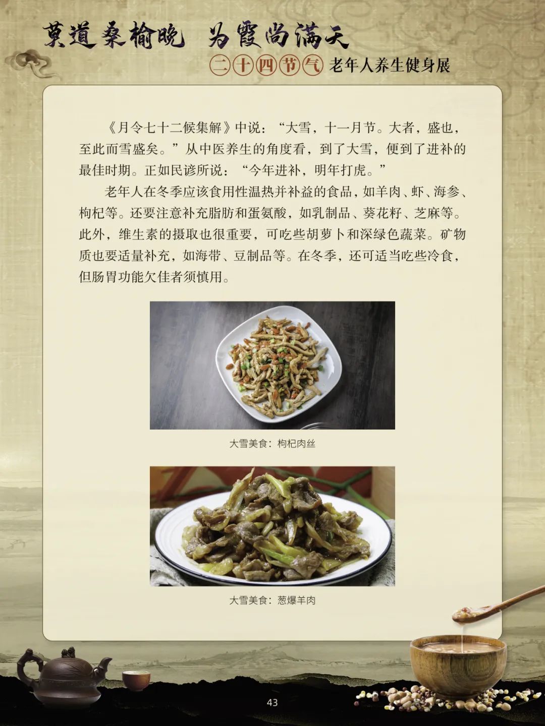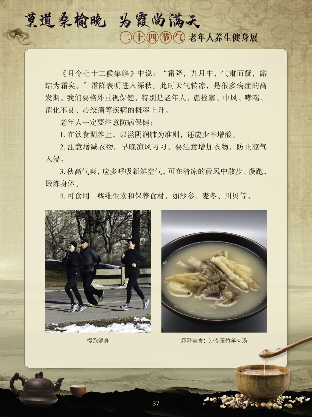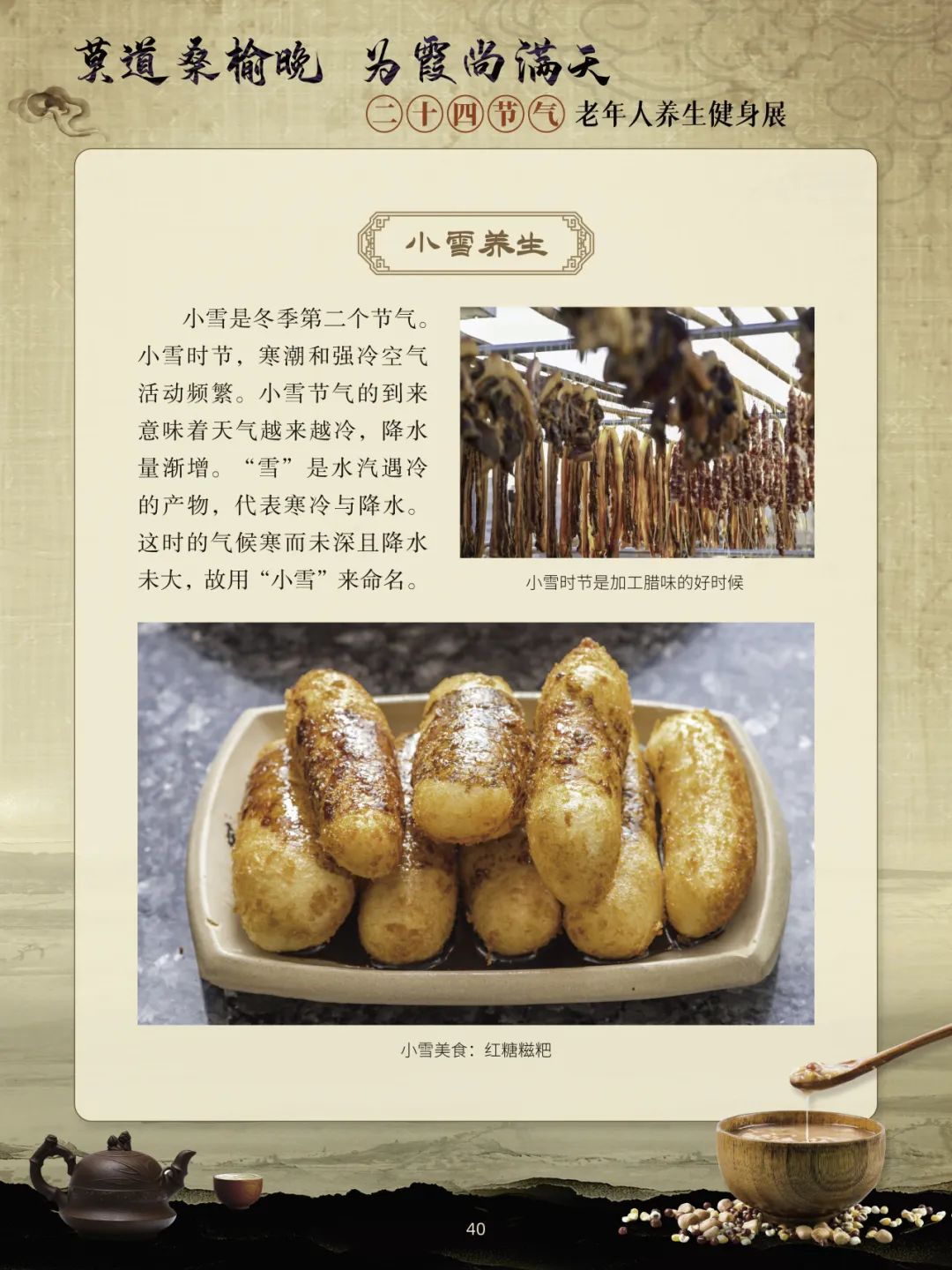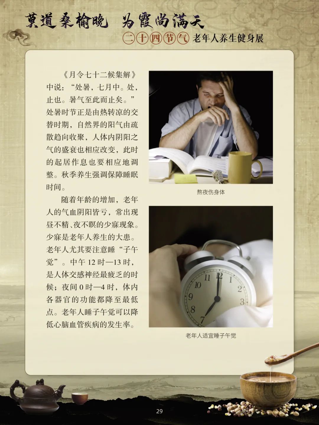 随着社会的发展和科技的进步,人们的生活方式发生了巨大变化,现代的人们似乎不再依自然变换行事,甚至逐渐忽视了节气变化对身体的影响。事实上,如果我们多关注一下节气的变化,跟随其变化调整我们的活动和饮食,很多疾病或身体的不舒服都是可以避免的,特别是老年人在日常保养上更需要对节气变化保持敏感。为此,我们特别策划了本展览。下面就请随着我们的展览,来了解一下老年人应该如何针对二十四节气进行养生与健身活动吧。