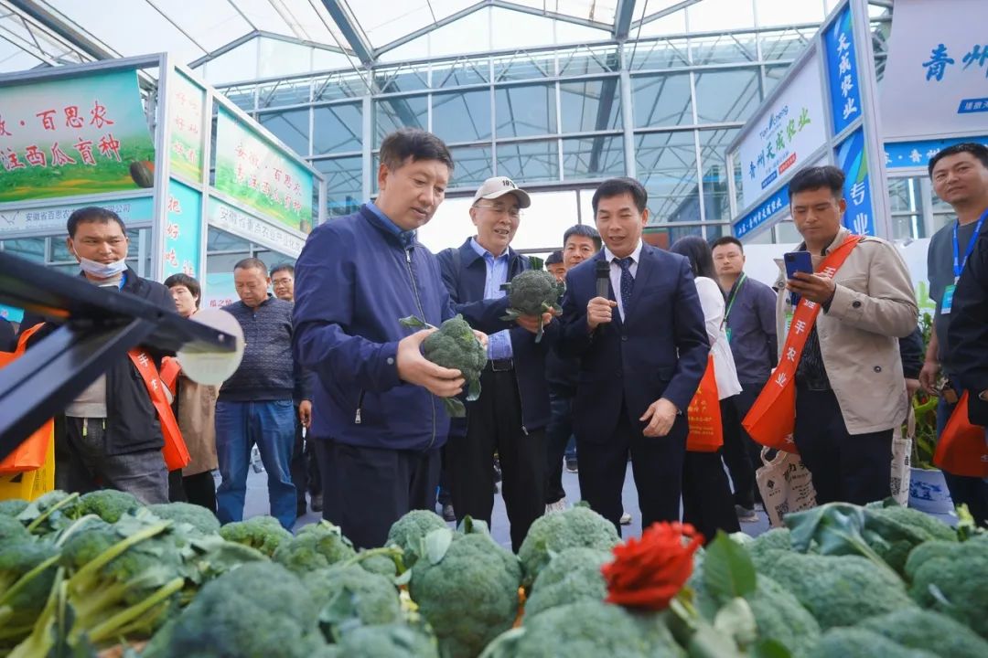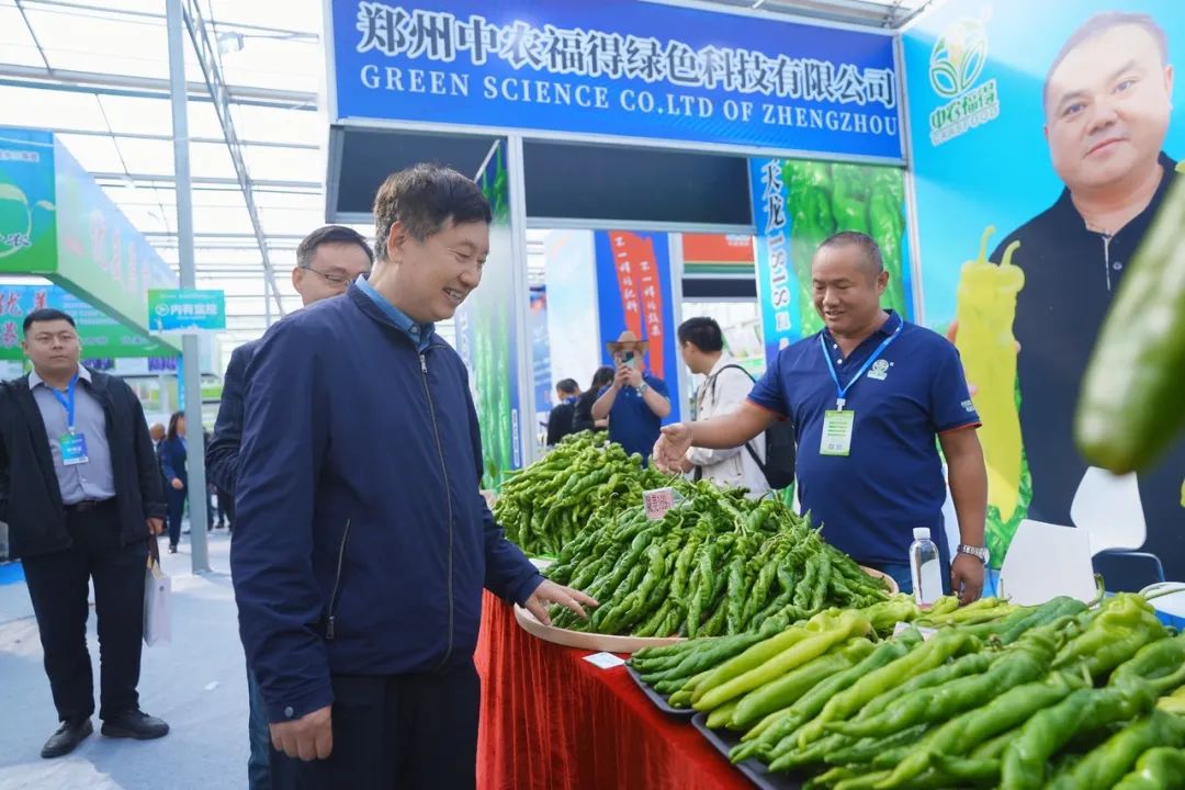 近年来,郑州市惠济区借力河南、山东、河北等全国最大蔬菜产区优势和交通区位优势,依托沿黄和美乡村建设规划,将种业会展与沿黄村庄产业发展相结合,以种子种植、推广、交流、展示、交易为抓手带动沿黄区域经济社会高质量发展。此次展会共设立20万平方米新品种展示区,包括100个展示大棚、13万平方米露地展示区和近2万平方米品牌馆展区、现货交易区、蔬菜农资区、蔬菜装备农机区、蔬菜雕刻插花区、水果蔬菜现实品尝区;新优品种参展单位就有339家,对外展示6506个蔬菜和鲜食玉米新优品种,包含茄果类、瓜类、豆类、叶菜、特色蔬菜等55个蔬菜品类。
