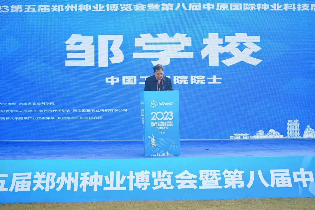 中国工程院院士、郑州种业博览会暨中原种业科技展览会特别顾问、河南欧兰德种业有限公司省辣椒良种联合攻关项目首席科学家邹学校院士讲话