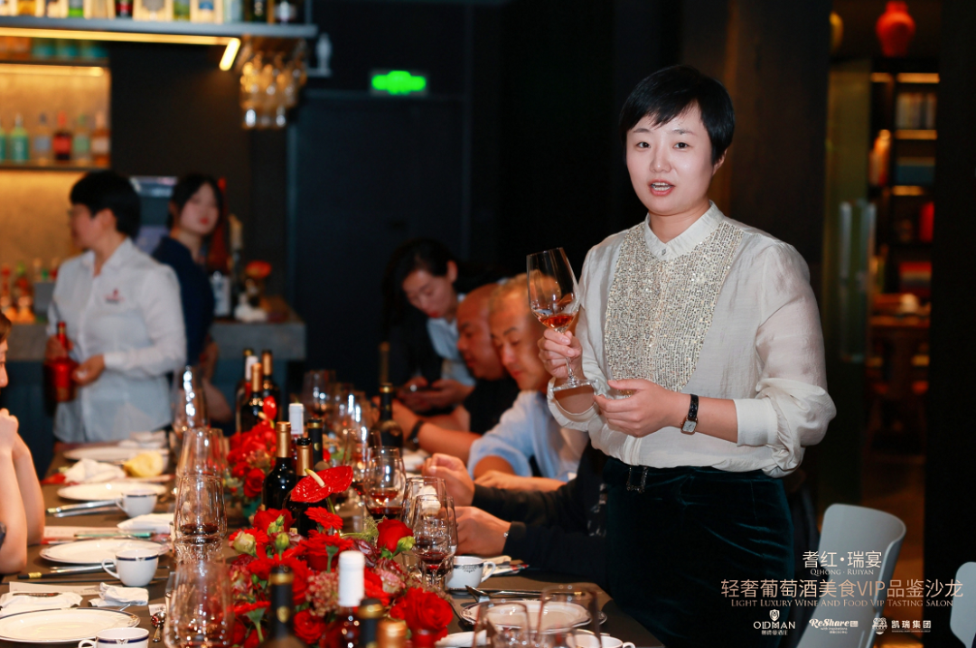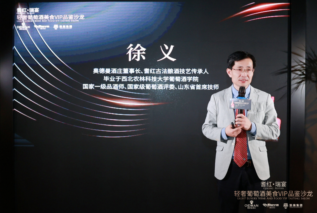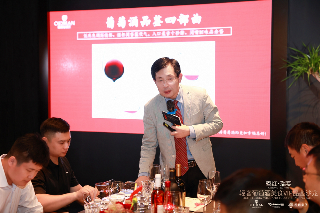 随后徐义以“四步曲”方法引领大家逐一品鉴奥德曼耆红为代表的多款美酒佳酿。