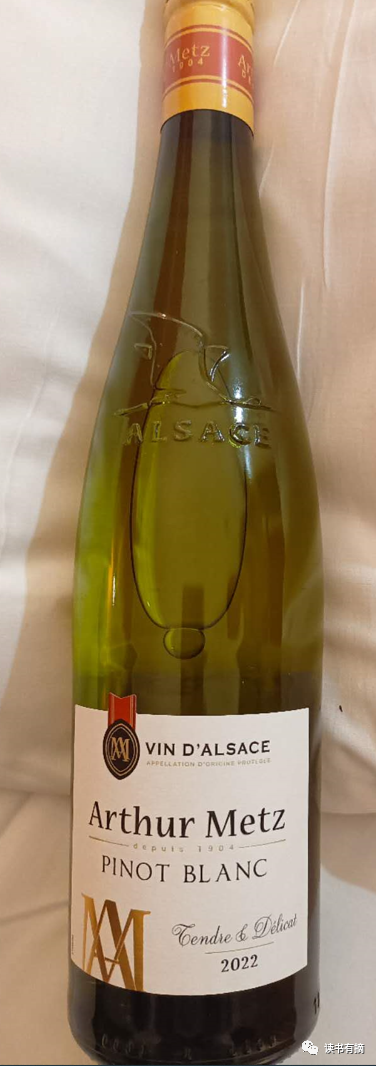 下图的白葡萄酒,葡萄品类是琼瑶浆,产自阿拉萨斯AOC特级田(Grand Gru),葡萄产自阿拉萨斯的特级庄园Steinklotz,阿拉萨斯共有51处特级庄园,该庄园排名首位。阿拉萨斯产的白葡萄酒一般使用地方名AOC,会标识“Vin d’ Alasace”,1983年制定了新的AOC,认定了阿拉萨斯特级庄园,这些庄园的酒必须使用四大高贵品种的某一品种单独酿制,葡萄必须手工收割而且要限制产量。Arther Metz是灌装商的名称。 该葡萄酒香气十足,充满荔枝和玫瑰花的华丽香气,入口柔和,滑润,甘甜,有点甘腐的味道,非常适合女性饮用。超市销售价格13.29欧元。 下图的白葡萄酒品种是威士莲(雷司令),其他信息与上面相同,除了年份,年份是指葡萄收获年份,由于降雨量、温度等差异,不同年份味道会有差异。该葡萄酒含有单宁,味道有点涩,酸性较足,较为辛辣,有稍许酸橙味道,这种白葡萄酒最好要醒酒30分钟再喝。超市销售价格10.99欧元,可以陈年数十年之久。