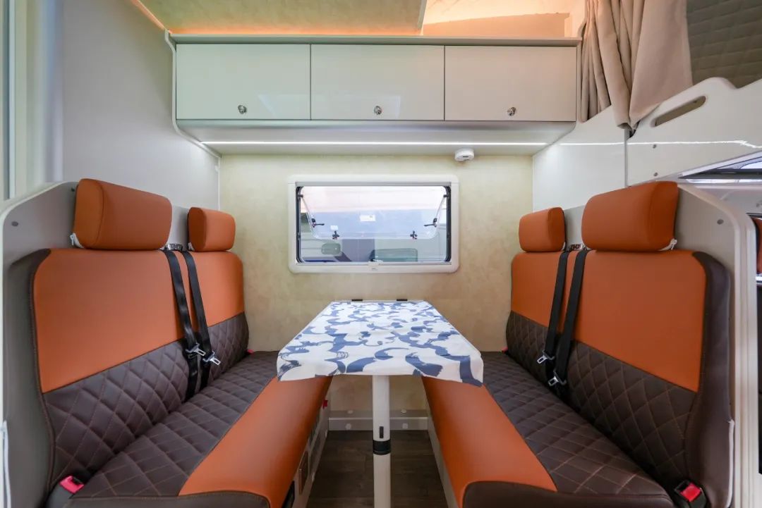 后部生活区内饰采用高级环保轻质板材,简约风格+撞色设计很耐看。