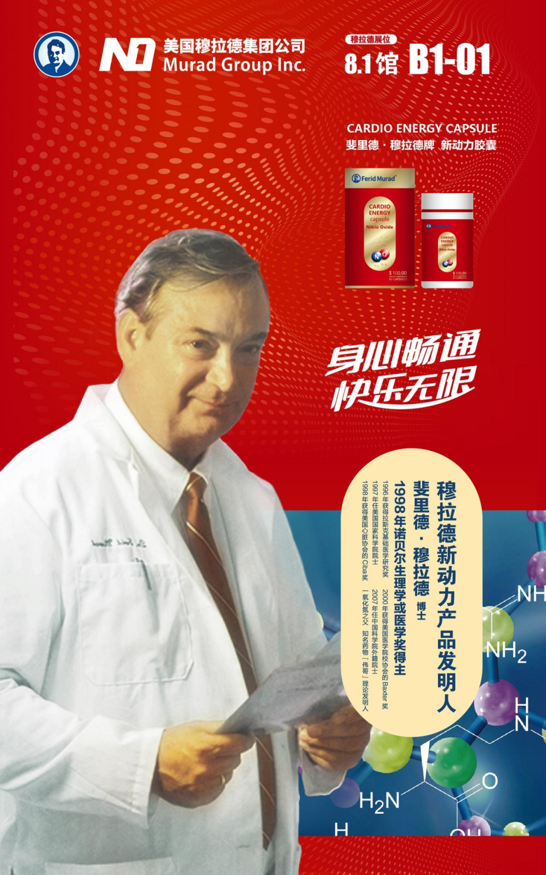美国穆拉德集团公司创⽴于2017年,总部位于美国加利福尼亚州,是⼀家从事⾼科技⽣物产品、医疗器械、健康营养品等研发、⽣产、销售以及进出⼝业务的公司。公司借助进博会的溢出效益,品牌影响⼒得到⼤幅提升,进⼀步扩⼤了中国市场份额。⽬前,公司在中国拥有上海、芜湖两⼤⼯⼚和多条产线,计划未来把研发中⼼逐步转移到中国。