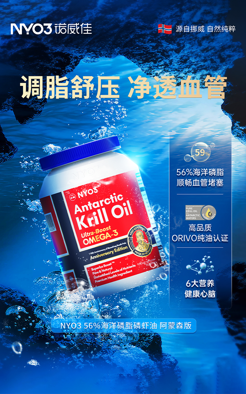诺威佳(NYO3)是⼀家挪威的⾼端膳⻝营养公司。公司名称NYO3蕴含以欧⽶伽3(Omega-3)为代表的“挪威新营养”之意。诺威佳坚持可持续发展理念,致⼒于将挪威独特营养元素与现代科技相结合,打造以“南极磷虾油”为核⼼系列的专业化、多样化的全健康周期膳⻝营养补充品。其产品忠于天然原料品质,采⽤可循环简材包装,已有32款在售,全⽅⾯传递了北欧健康⽣活理念。