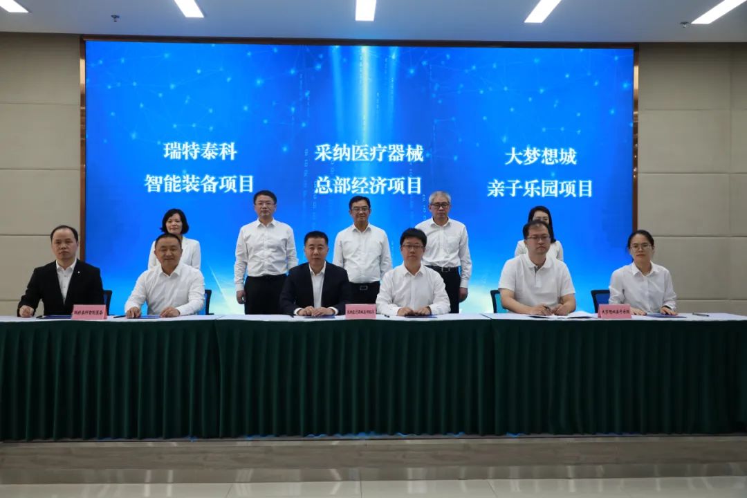 在随后举行的签约仪式上,涵盖生物医药、半导体、智能装备、金属新材料、新能源和农文旅等领域的12个项目成功签约,总投资额超40亿元。魏锋、杨伟兵、程云、苏丹、程春红共同鉴签。