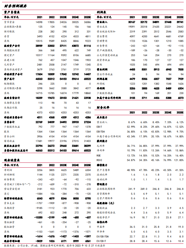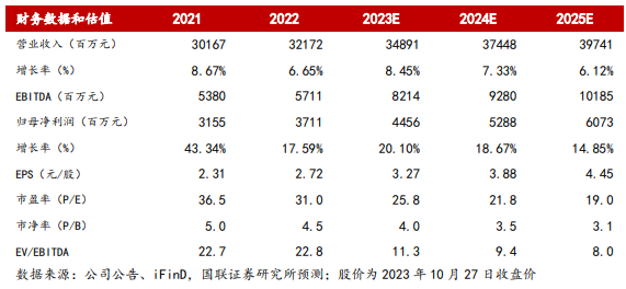 青啤坚持“青岛+崂山"双品牌战略,“一体两翼”产品布局下,主品牌营收有望维持高个位数增长。高端化逻辑持续演绎,渠道服务与执行力恒强,我们预计公司2023-2025年营收分别为348.91/374.48/397.41亿元,同比增速分别为+8.45%/7.33%/6.12%,归母净利润分别为44.56/52.88/60.73亿元,同比增速分别为+20.10%/18.67%/14.85%,EPS分别为3.27/3.88/4.45元/股,3年CAGR为17.84%。鉴于公司高端化、国际化战略不断深化,我们给予公司2024年EV/EBITDA目标值15倍,对应目标价124.03元,给予“买入”评级。