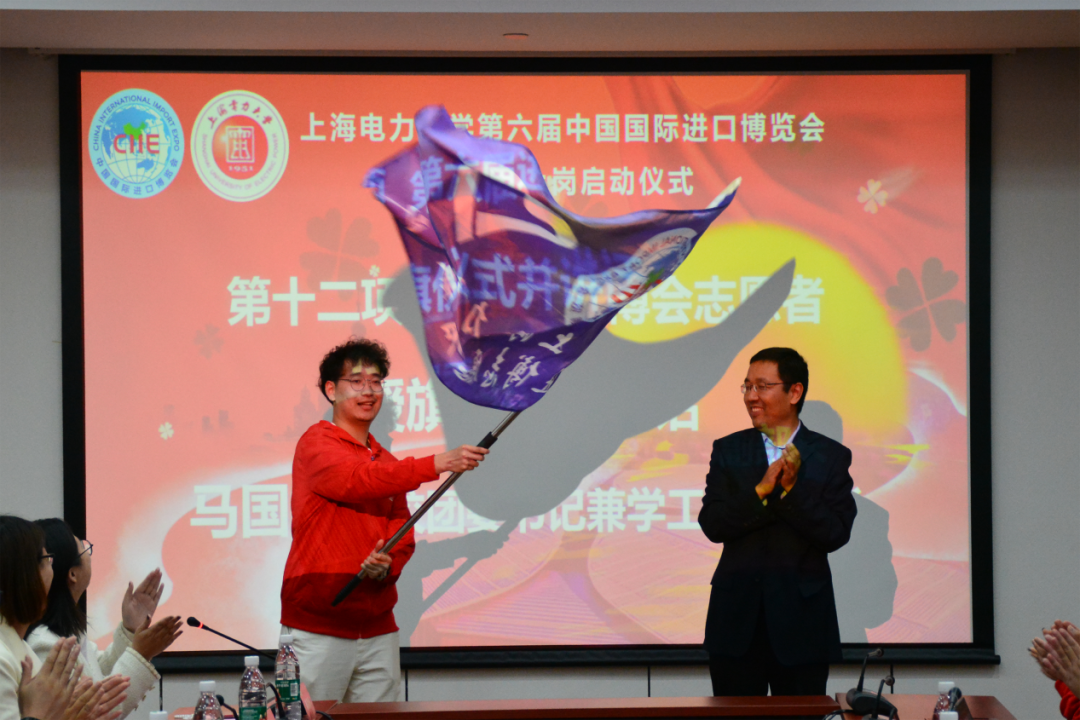授旗仪式彰显了第六届“小叶子”的青春风采,也预示着第六届进博会“小叶子”的顺利出征。