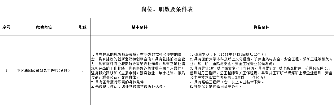 中煤平朔集团有限公司是中国中煤能源集团有限公司旗下的核心企业,是我国重要的动力煤生产基地和亿吨级煤炭基地。公司组建于1982年,直属煤炭工业部,负责平朔矿区的开发、建设、生产和后勤服务;1997年6月并入中煤能源集团有限公司;2012年8月实行集团化运作,成立中煤平朔集团有限公司;2016年1月1日,中煤集团对平朔矿区进行了业务整合,重组为立足煤电化打造“清洁能源供应商”的中煤平朔集团有限公司。经过四十年的发展,公司形成了煤电化一体化产业发展格局,现有保有储量17.75亿吨,年生产能力2000万吨以上的特大型露天矿3座,井工矿5座,年核定产能9040万吨;配套洗煤厂6座,4条铁路专用线总运输能力达1亿吨;化工产品合成氨产能30万吨,硝铵58万吨,煤基烯烃新材料及下游深加工一体化项目被列入2022年山西省重点工程;拥有7座参控股电厂,权益装机容量151.25万千瓦;在建及获批新能源装机总量274.4MW。截至2023年3月底,资产总额755亿元,累计生产原煤18.23亿吨,外运商品煤14.23亿吨,缴纳税费966.47亿元,为保障国家能源安全、繁荣地方经济发展、带动行业进步做出了贡献。平朔矿区的开发建设,得到了党和国家领导人的亲切关怀。80年代初,作为国家引进外资和改革开放的试验田,邓小平同志8次过问平朔安太堡项目,李鹏同志5次视察平朔矿区并亲自为安太堡项目开工剪彩。江泽民、胡耀邦、华国锋、张德江等党和国家领导人先后视察平朔矿区。公司先后荣获全国文明单位、全国五一劳动奖状、全国优秀企业金马奖、全国百家文明社区示范点、全国国有企业创建“四好”领导班子先进集体、煤炭行业AAA级国际信用企业、中华宝钢环境奖、中国最美矿山等多项荣誉。2018年,在庆祝改革开放40周年大会上,作为煤炭行业唯一代表,公司第一任党委书记、总经理陈日新同志被党中央、国务院授予“改革先锋”称号。“十四五”期间,平朔集团将聚焦“12345”发展战略,即锚定建设世界一流能源企业目标,弘扬平朔改革开放精神和右玉精神,建设煤炭保供核心基地、“两个联营”示范基地、高端煤化工基地“三大基地”,实现安全发展、绿色发展、高效发展、智能发展,耦合发展煤炭、煤电、煤化工、新能源、生态“五大产业”。根据公司生产需求,进一步深化市场化选人用人机制,现面向社会公开招聘,有关事项公告如下: