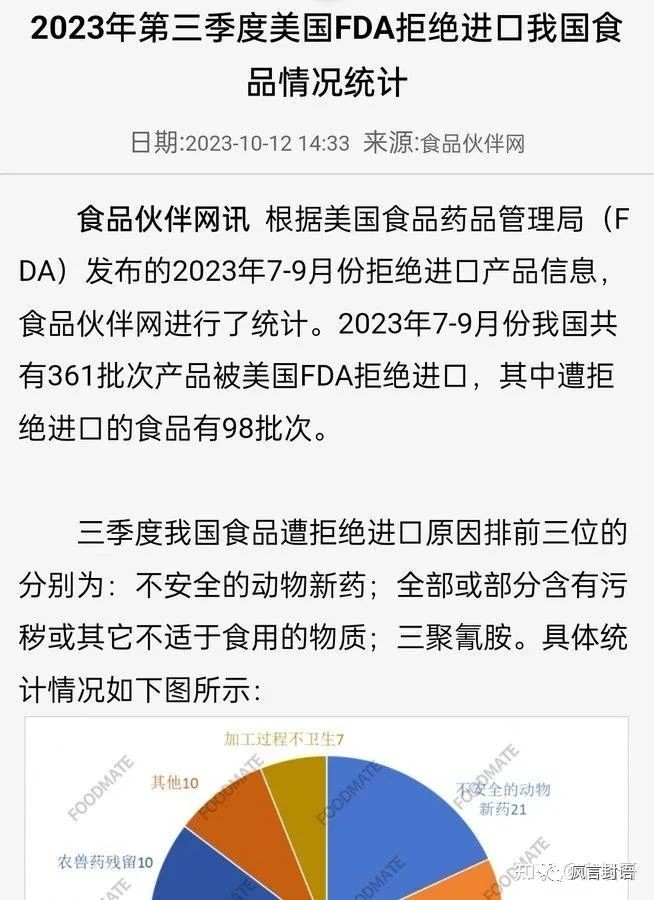但是在今年美国食品药品管理局披露的数据来看,仅2023年7月到9月中国向美国出口的263批次食品中,就有98批次遭到拒绝,其中的一项主要原因就是含有三聚氰胺。我们也可以看到,三鹿改头换面再次投入市场,在这些问题的背后,是对于食品安全问题的不重视、是制度的不完善。
