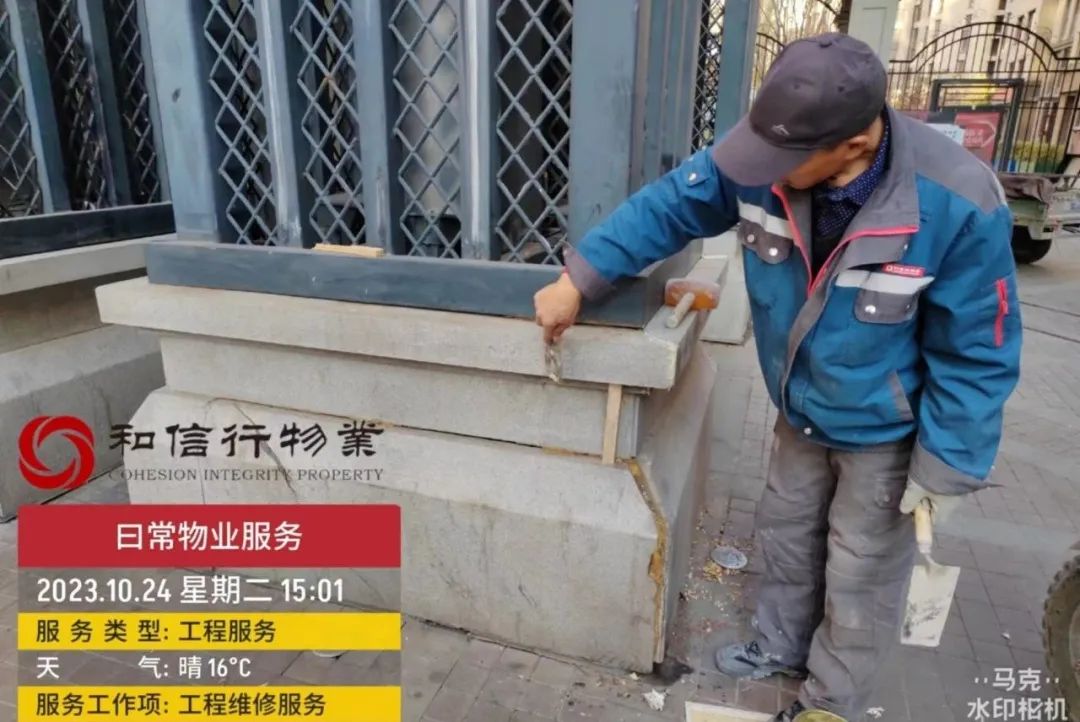 八、陆续完成小区地面砖维修、修复园区下沉井盖;