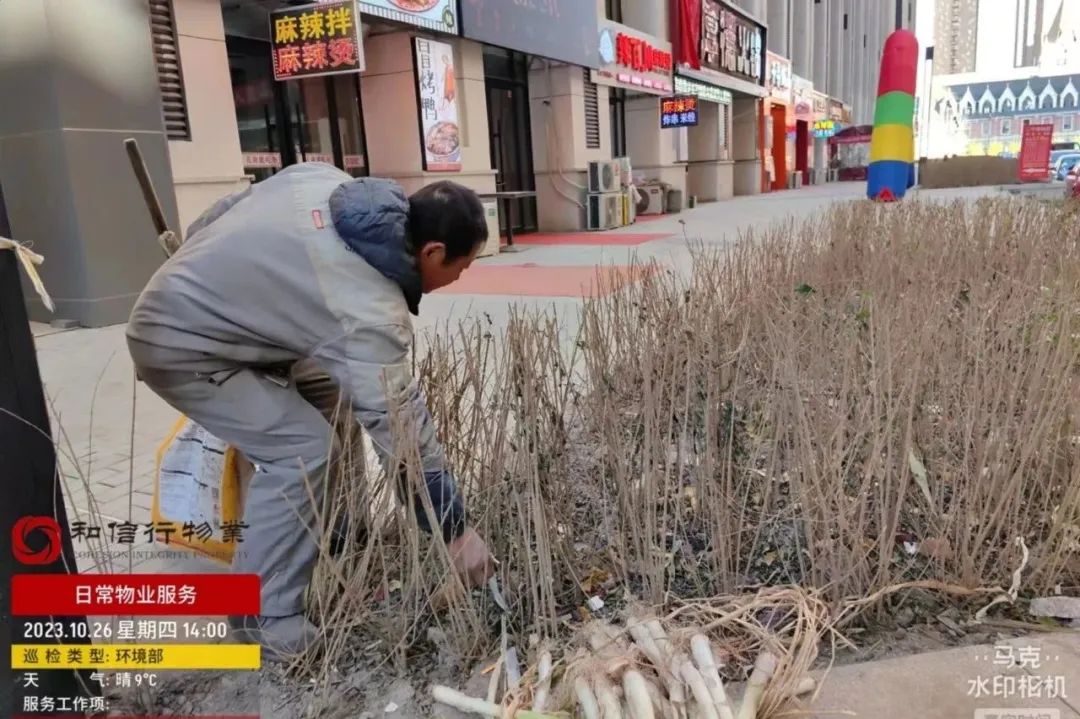 四、捡拾园区绿篱内垃圾;