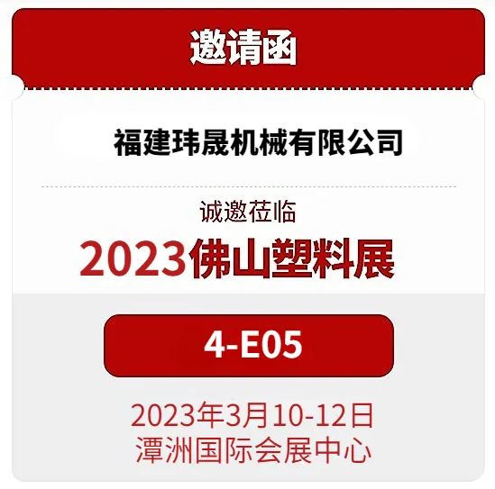 【展商推荐】福建玮晟机械有限公司,与您相约2023佛山塑料展【4-E05】