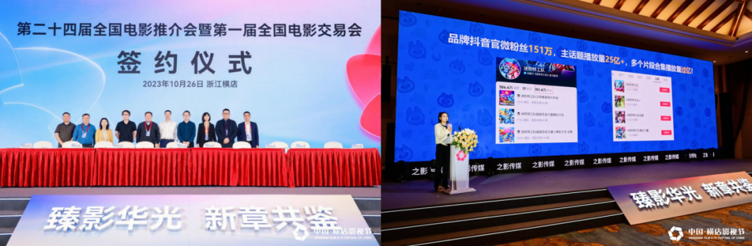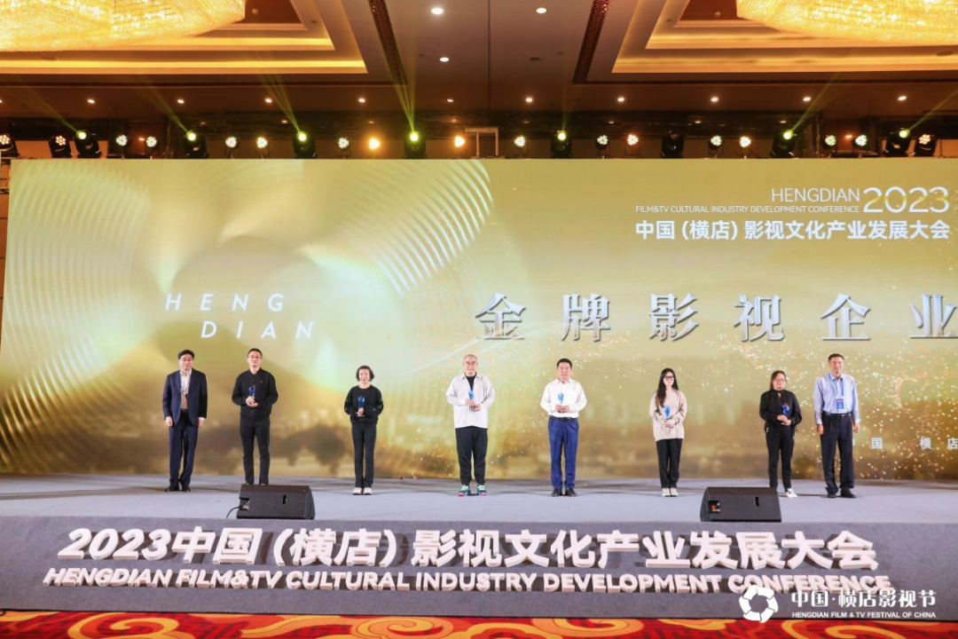 10月27日下午,林亮、傅立文受邀出席2023中国(横店)影视文化产业发展大会,并为相关影视企业颁奖。