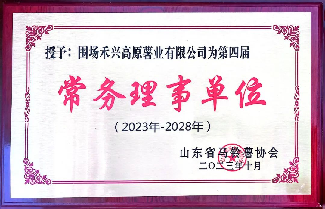 授予:围场禾兴高原薯业为常务理事单位