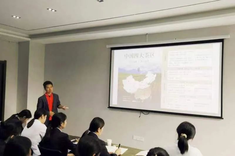 他从茶叶的演变、类别,茶区的分布、茶叶品质特征、冲泡技巧及推广营销技能等方面作了系统的讲解。培训过程中,参训员工专心致志听讲,积极主动参与回答问题,特别是在互动环节中,结合日常工作中遇到的问题,向讲师提出了疑问,讲师们认真地一一作了解答,气氛活跃。