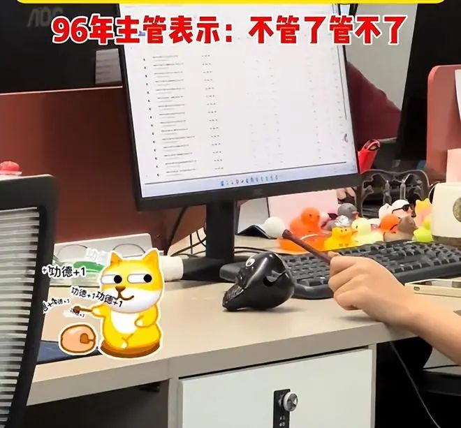 没过几天,倒是没见这个女生上班时喝酒了,但她又拿来了另一样东西,木鱼。