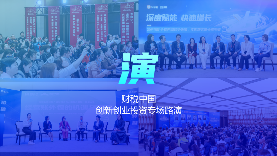 ——第四届财博会将设立投资路演专场,邀请投资界专业人士对话代账机构,进行产业估值、项目评估、未来前景规划等内容路演,优选项目进行投资签约,为代账机构发展提供有力支撑,焕发代账蓬勃生机!