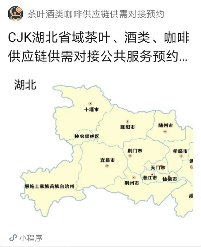 任何合规的厂商都可以低成本、大规模、便捷接入这一张普惠性区域行业渠道终端网络,任一合规单品都可以快速推向市场触达客户,低价、自主、一键接入(CJK湖北省茶叶酒类咖啡供应链供需对接公共服务预约平台/小程序)湖北省域某一个区或县域销售市场的终端货架或货道。在上游货源端是开放的合作的,在区县域渠道终端反倒是收敛的,紧紧围绕本地客户。下沉市场是数据节点,是数字化的重点区域。(单品接入区县分销点第一批样品不现结,动销即结算或在期限内结算,动销进货开启现结流程。)