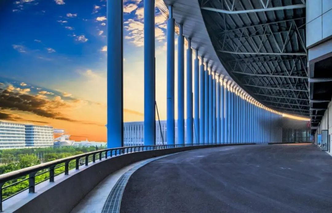 国家会展中心的1至3号馆均为单层无柱展厅,长度270米,穹顶跨度108米,净高32米。4至8号馆为双层大展厅,其中一层展厅净高12米,柱网27x36米;二层展厅净高17米,柱网54x36米,整个展厅仅有8根立柱。无以伦比的展示空间,为展商形象的高品质呈现提供了无限的可能性。