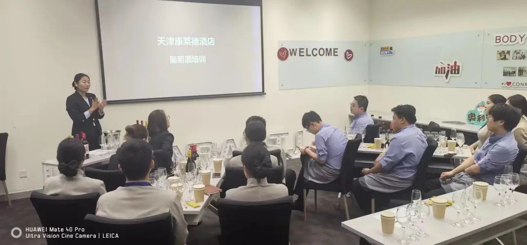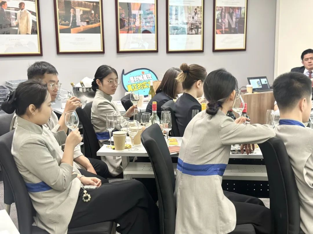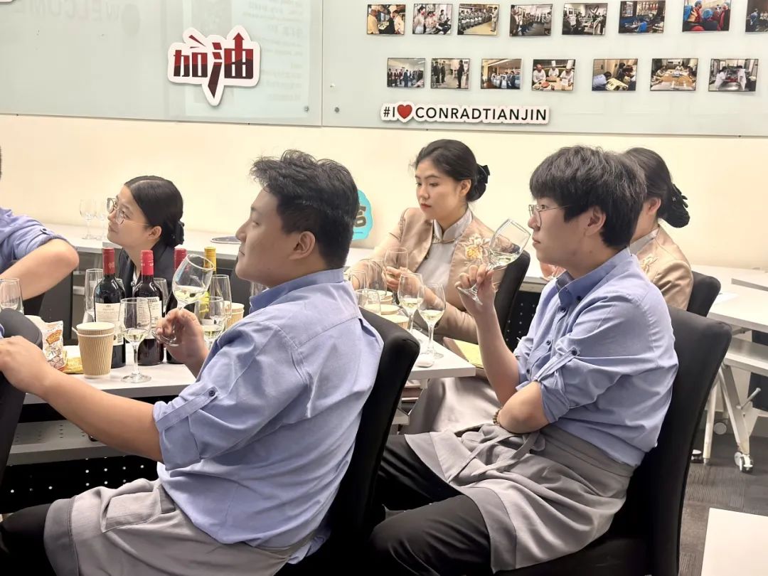 本月我们邀请了瀛轩中餐厅经理Nikki Zhang为团队成员们开展了葡萄酒知识培训,从葡萄酒的酿造与分类、品鉴、葡萄的产区品种、餐酒搭配以及葡萄酒礼仪这五方面分别进行介绍,帮助大家更好地了解葡萄酒相关知识,为客人带来个性化的奢华体验。