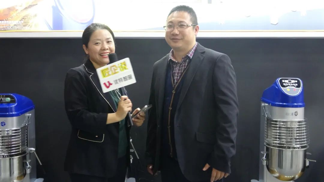 周锡勇:好的,给大家介绍一下这个系列的产品,这是一个智能打蛋机,它具有无极调速、定时功能、烘焙是可以根据产品定制化选择速度,这台产品无需停机换挡,区别于老一代的产品可根据烘焙师的需求随意调节,还拥有智能化的技术。