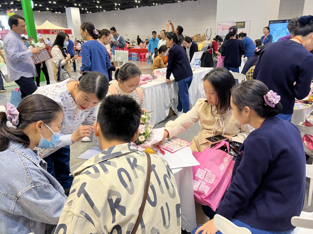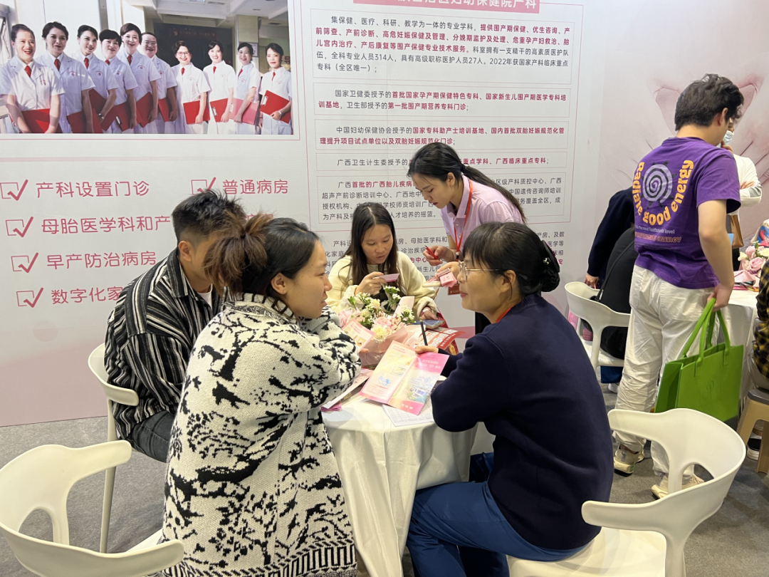 展会上,我院产科、手术麻醉科、盆底康复中心、外联部等多学科团队参会,他们用专业的知识和热情的服务,为现场的准妈妈们提供了详尽的咨询和解答。