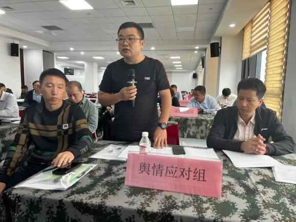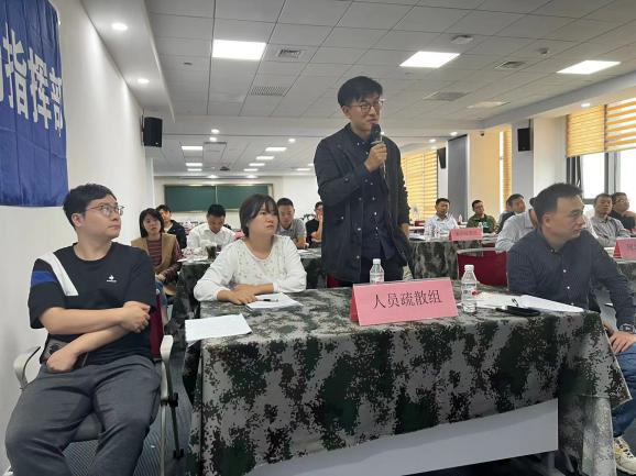 接到演练任务后,各组迅速响应,按照《金山区突发事件应急预案》要求,成立指挥部并对现场处置、舆情应对、人员疏散、环境监测、物资保障、医疗救护、事故调查、善后处理等工作任务进行分工,参演人员们全情投入到各自角色中,紧张地开始推演,“会场”瞬间犹如“战场”,争分夺秒完成各项推演任务。