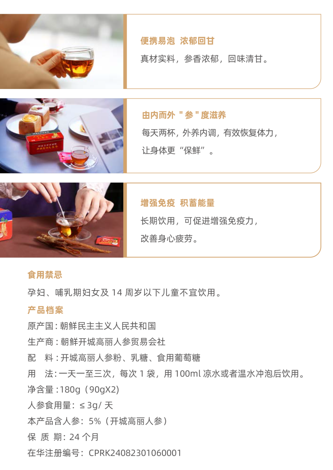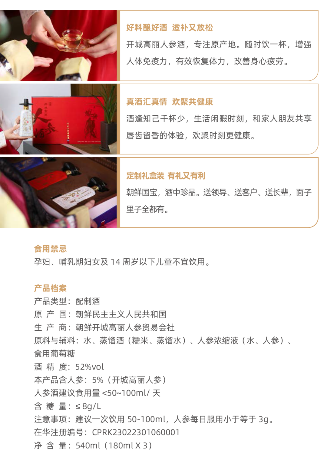 北京正津商贸有限公司作为官方授权的中国地区(含港、澳、台) 独家总代,将朝鲜开城高丽人参系列原装进口产品引入中国市场,致力于为消费者提供优质、健康的人参制品,护航国人的高品质生活。