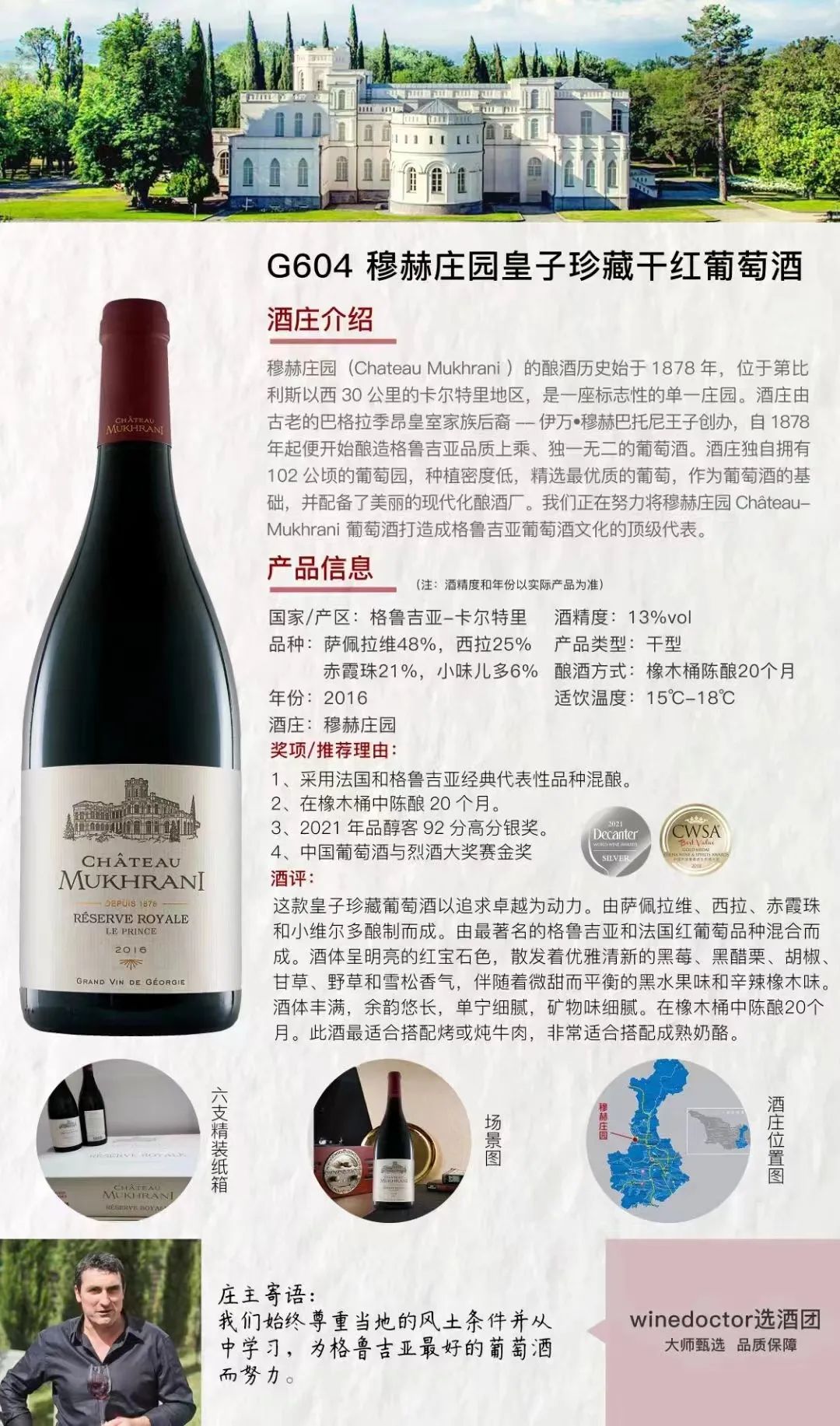 由最著名的格鲁吉亚和法国红葡萄品种混合而成。酒体呈明亮的红宝石色,散发着优雅清新的黑莓、黑醋栗、胡椒甘草、野草和雪松香气,余韵悠长,单宁细腻,矿物味细腻,在橡木桶中陈酿20个月。