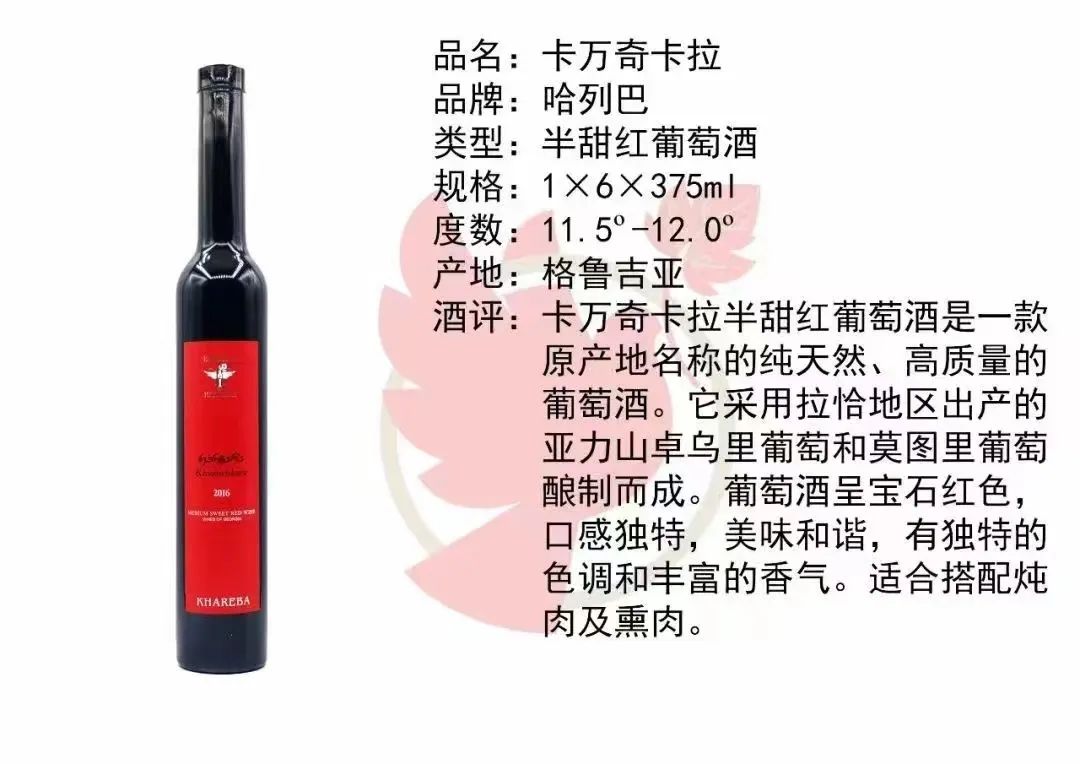 这款纯天然半甜红葡萄酒采用卡赫季地区金兹玛拉乌里产区出产的萨别拉维葡萄品种酿制而成葡萄酒呈深红色,香气极为复杂酒香中充满了樱桃、黑莓和李子的香气。口感和谐,如天鹅绒般丝滑。